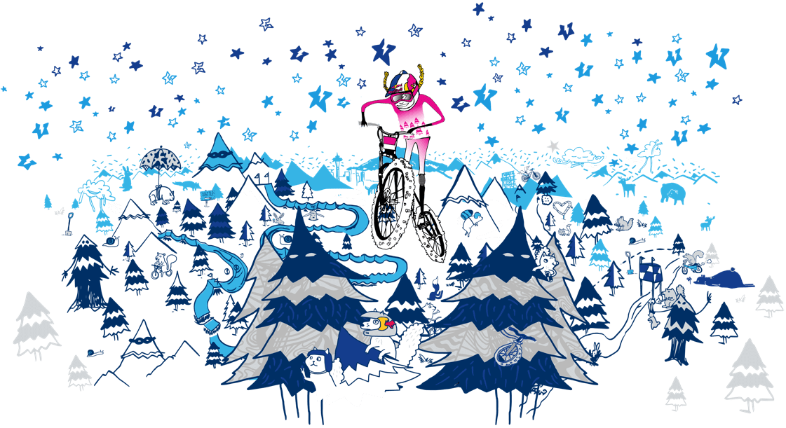 Opening one of Kintner’s sketchbooks is like being let inside her brain. Pages of doodles of mountain bike outerwear, calendars and little creatures fill the pages. Her drawings are quick and whimsical, as though her thoughts are exploding onto the page. Kintner’s art gives the sensation that if you were to tumble into one of her cartoons, it would be the best adventure.